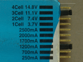* Selectable out put voltage 3.7V (1 Cell), 7.4V (2 Cell), 11.1V (3 Cell), 14.8V (4 Cell)