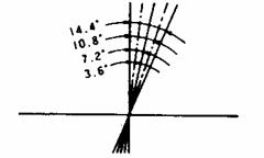 [Example] For a four arm horn the angular shift per segment is 14.4°. The shift to the right is 90° - (14.4° x 6) = 3.6°. To shift by the same angle in the opposite direction, use the opposite arm number.